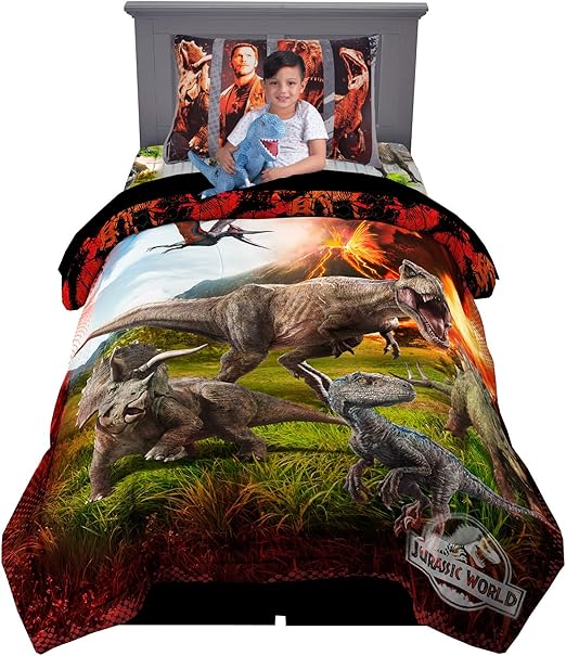 Jurassic World Comforter: The reversible comforter is made to fit a twin bed.